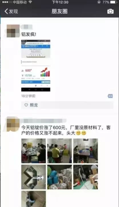 2016年來,房價瘋狂上漲,煤碳、鋼鐵、木材,不鏽鋼一路狂飆。當房價被揭製之後,運輸、化工原料、電子元件、包裝印刷、不鏽鋼、鋁材、銅錠開始接力狂漲。在一片“漲、漲、漲“的狂潮之下,中國工業領域已經沸騰。生意難做 ,較後兩月是傳統旺季,本以為可以賺點錢過年,誰知道原材料瘋漲,各種輔料也比拚著漲價,運輸成本上漲,人工工資也要漲,連微信支付寶也要收手續費了,深感壓力山大……